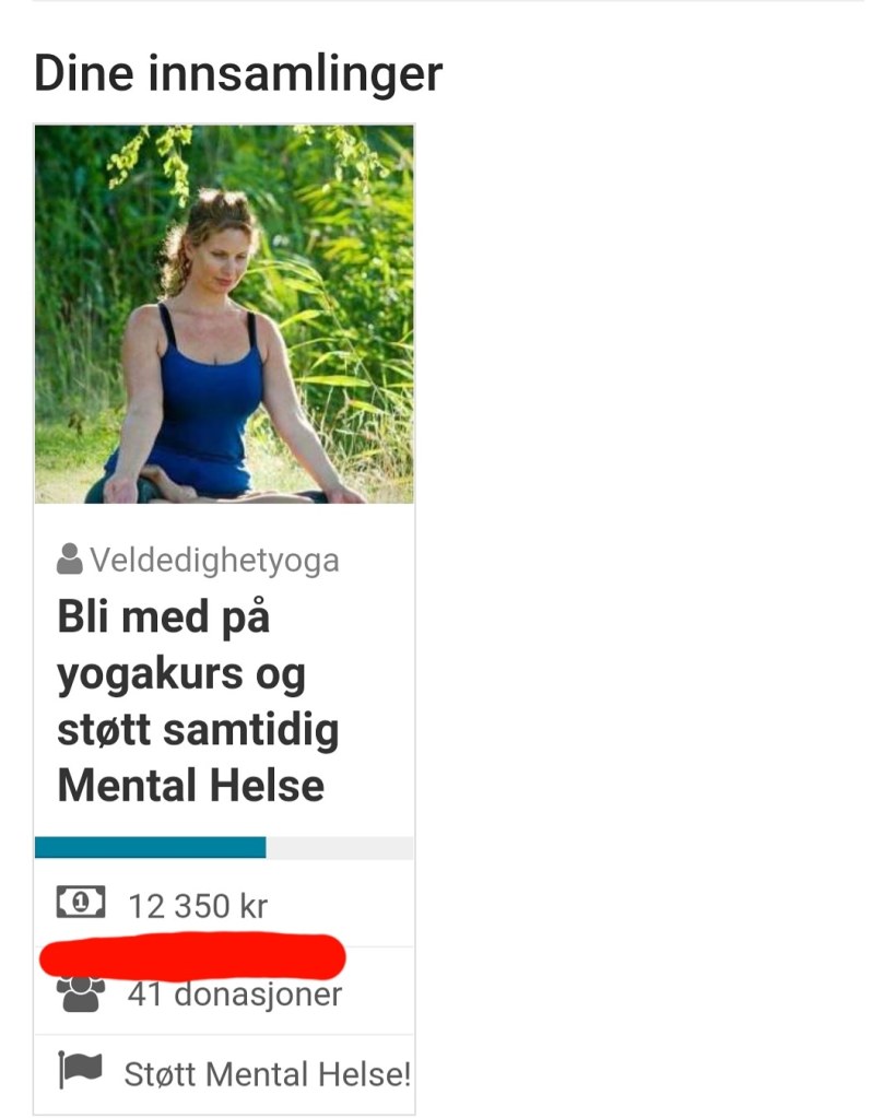 På vårens yogakurs samlet jeg inn penger til Mental Helse og resultatet ble 12.350 kr. Tusen takk til alle dere som har bidratt🙏❤.
