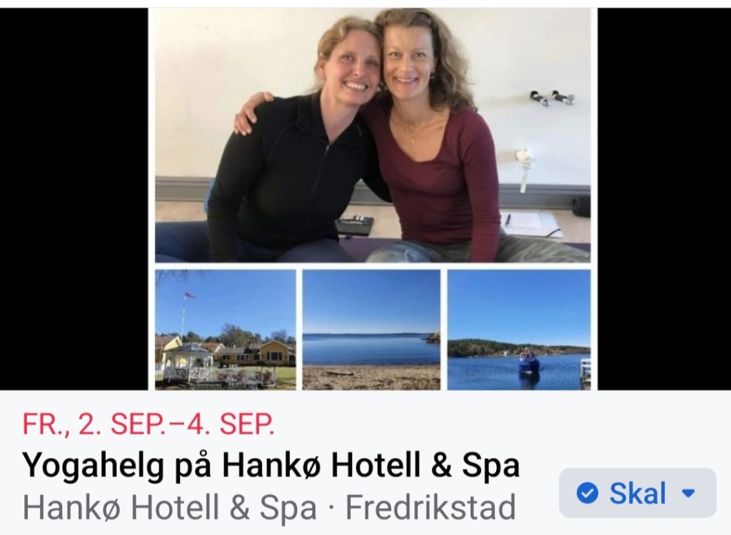 For mer info, så se under fanen workshops/retreats her på Veldedighetyoga.com eller følg linken til arrangementet på Facebook. https://facebook.com/events/s/yogahelg-pa-hank%C3%B8-hotell-spa/698770121354189/