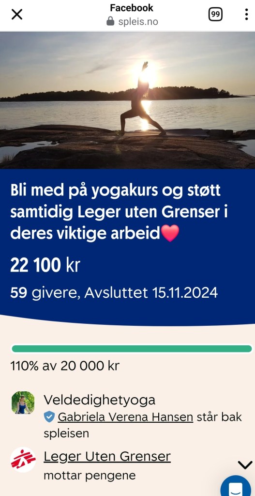 På alle høstens yogakurs så samlet jeg inn penger til Leger Uten Grenser og resultatet ble 22.100 kr😍. Tusen takk til alle dere som har bidratt 🙏❤️